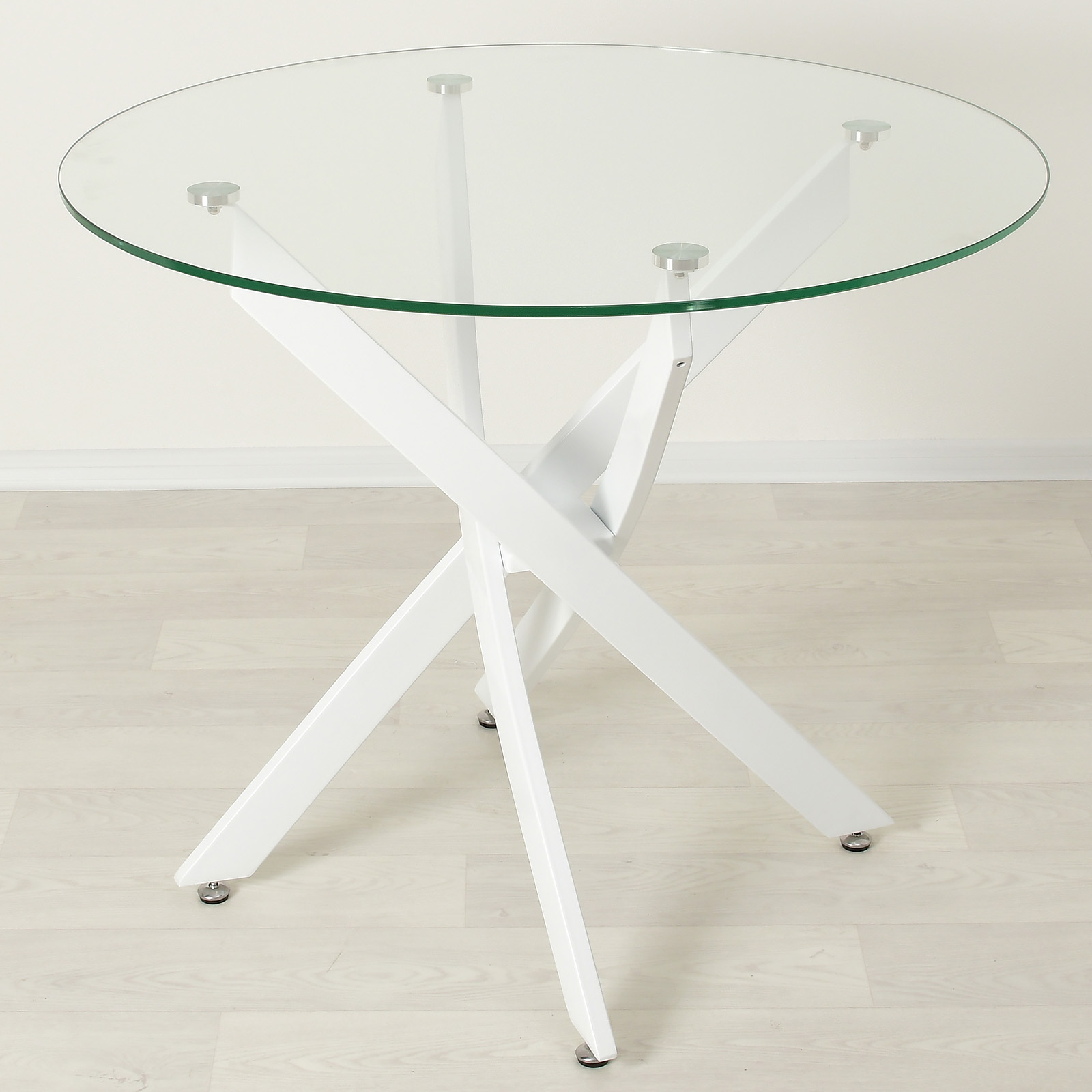 Хороший, аккуратный, красивый небольшой столик. Самое то для маленькой кухни, компактно, за счет прозрачности не перегружает интерьер. Сделан тщательно, качественно. В комплекте есть утяжелитель для ножки, но и без него стол хорошо и устойчиво стоит.